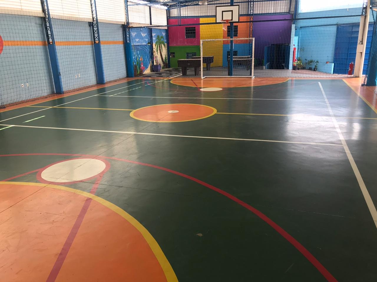 Além disso, o colégio conta com uma estrutura física tecnológica que auxilia na concretização do modelo de aprendizagem que une o mundo digital com o concreto, como sala de informática, projetores nas salas de aula, netbooks e lousas digitais